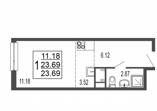 Студия, 24.2 м², Этаж: 17/17, № 761