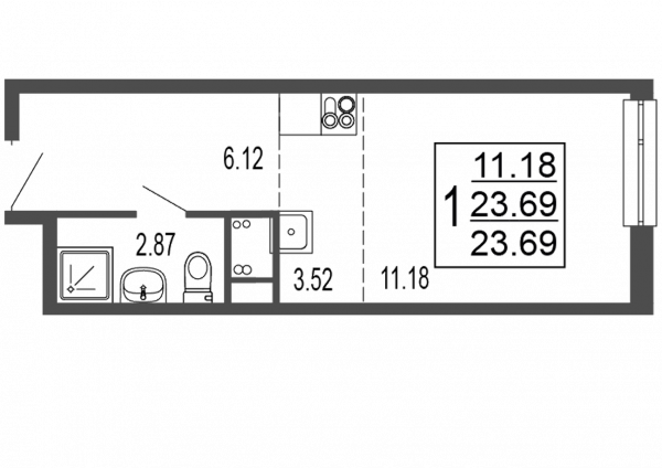 Студия, 24.2 м², Этаж: 17/17, № 498