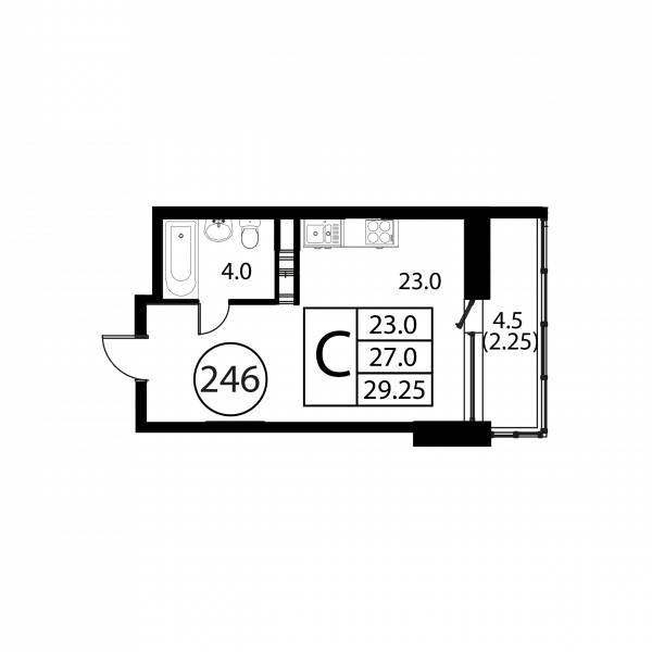 Студия, 29.25 м², Этаж: 9/12, № 246