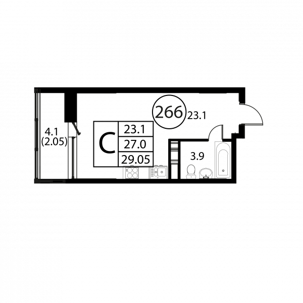 Студия, 29.05 м², Этаж: 11/12, № 266