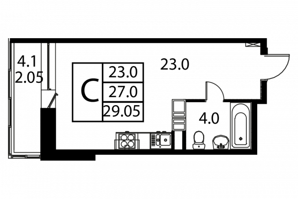 Студия, 29.05 м², Этаж: 6/12, № 60