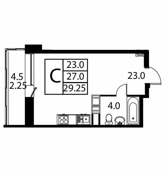 Студия, 29.25 м², Этаж: 7/12, № 264