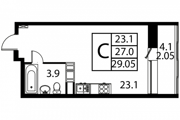 Студия, 29.05 м², Этаж: 11/12, № 299