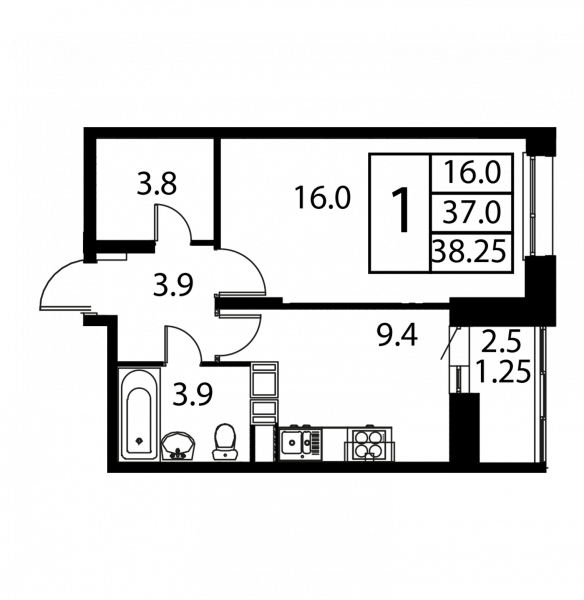 38.25 м²