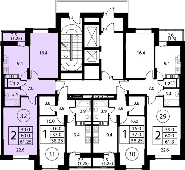 61.25 м²