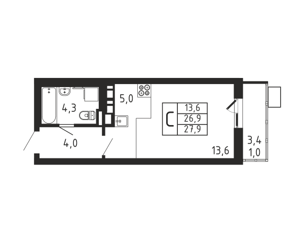 Студия, 27.9 м², Этаж: 7/9, № 356