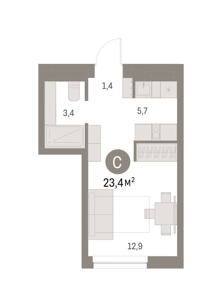 Студия, 23.39 м², Этаж: 5/13, № 207